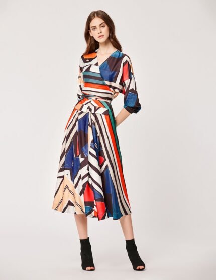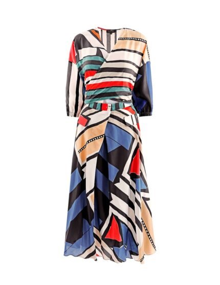 This glamour checked dress is detailed with a V-neck ribbed-knit and equipped with a belt to accentuate the body silhouette. This piece highlights an elegant and feminine appeal and suitable for various occasions and parties.